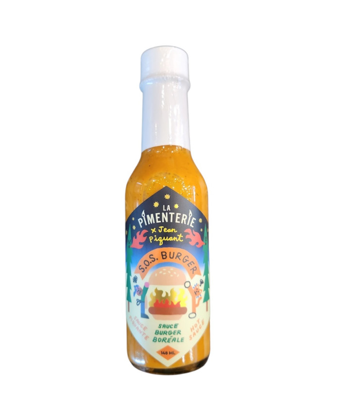 Bon ! On a fait une collaboration avec Jean-Piquant. SOS Burger. Une sauce piquante à burger punché aux Pousses d’Épinette, Myrique Baumier et un peu de Sirop d'Érable. (Ce n'est pas merveilleux ça là!) Relevée au Habanero. Sucrée au sirop d’érable. Conçu pour rehausser